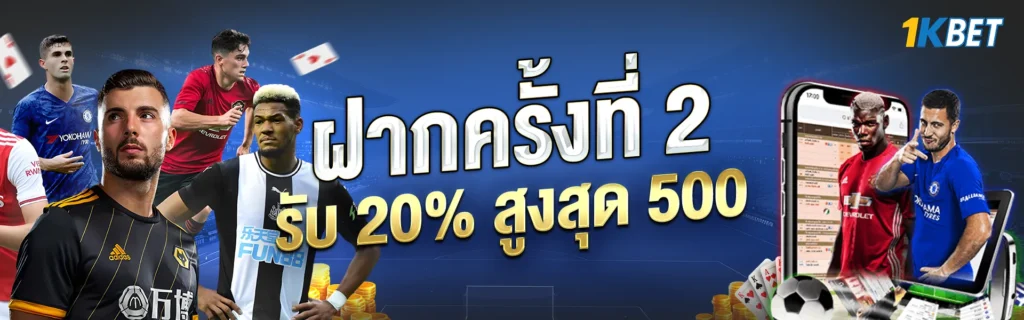 โปรฝากครั้งที่ 2 รับโบนัสเพิ่ม 20% สูงสุด 500 บาท